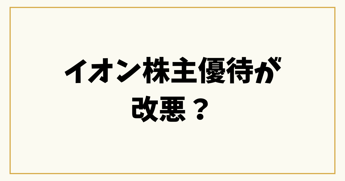 2024年以降、イオンの株主優待に複数の変更があり、「改悪では?」という声も増えています。
