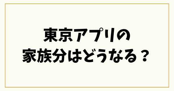 東京アプリの家族分は「一括管理」ではなく「個別最適」が正解です。